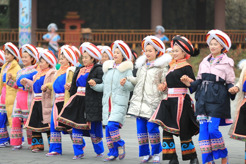 2020年12月31日,贵州省黔西南布依族苗族自治州晴隆县三宝彝族乡易地搬迁群众穿上盛装,围着篝火跳起阿妹戚托舞,迎接新年的到来。新华社记者 刘勤兵/摄