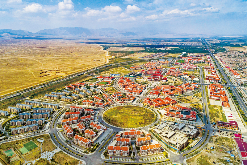 1996年,东西部扶贫协作开启壮丽征程,福建与宁夏结成帮扶对子。经过20多年脱贫攻坚,作为两省区扶贫协作的示范窗口,闽宁村发展成了闽宁镇,昔日“干沙滩”变成了如今的“金沙滩”,从西海固地区搬迁来的6.6万生态移民过上了好日子。图为宁夏永宁县闽宁镇的移民新村原隆村。 申进湘/摄