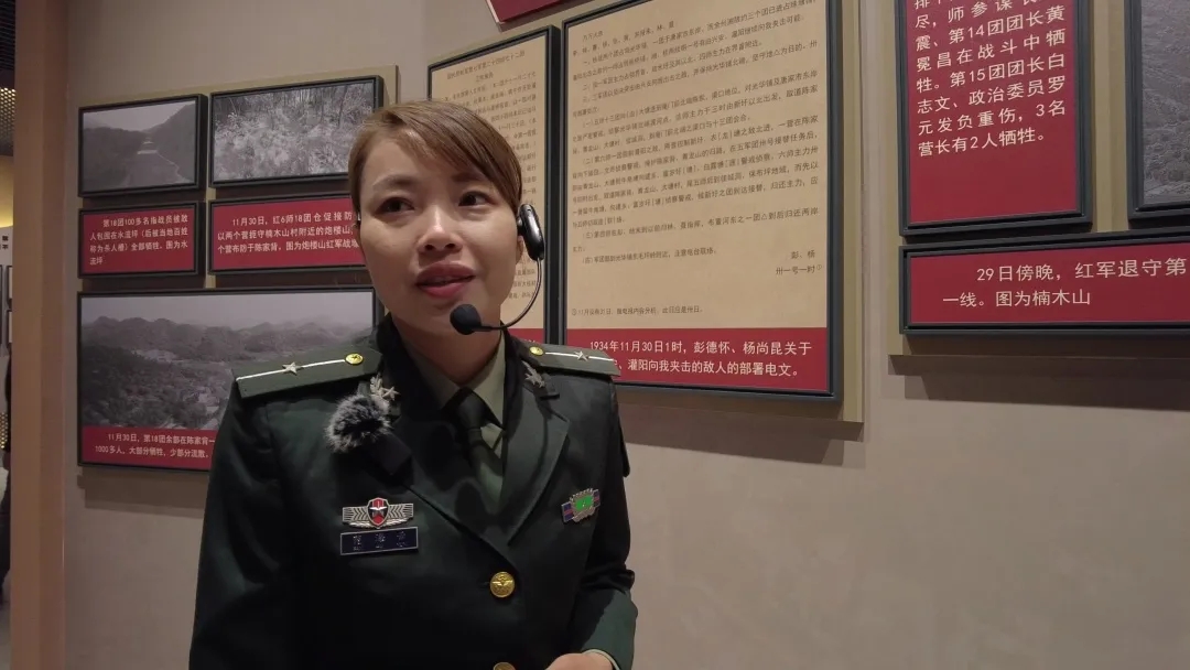 在新圩阻击战史实陈列馆,灌阳县湘江战役红色文化传承中心副主任范海云给我们讲述了红十八团战士阵亡“杀人槽”的故事。