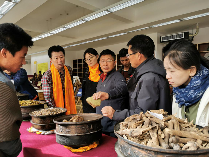 “我们向着小康走”中国作家采访团在四川壤塘采访藏香制作。中国作家协会供图
