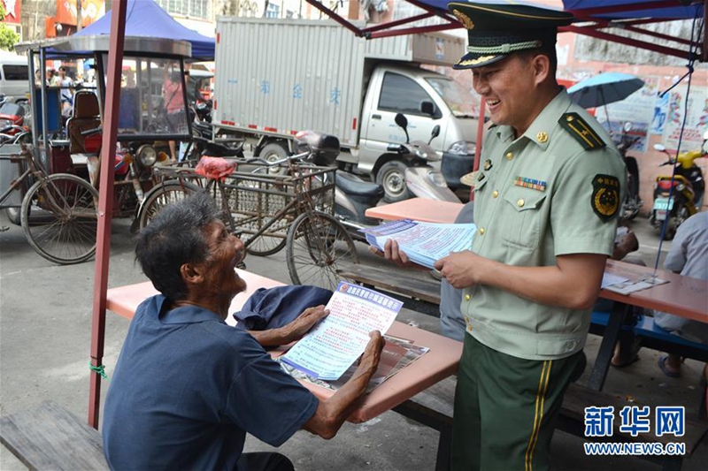图为孙丽美(中)入户开展平安建设宣传(资料图)。 新华网发(霞浦县融媒体中心供图)