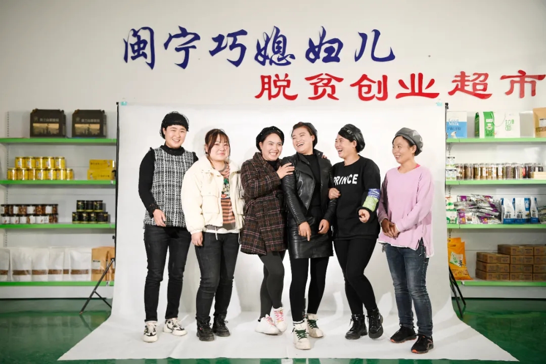 “巧媳妇”直播带货团是宁夏银川市永宁县闽宁镇原隆村的闽宁禾美电商扶贫车间为试水网络直播销售而成立的,该扶贫车间在2019年建成投产,优先招录当地留守妇女、建档立卡贫困户。留守妇女在政策的红利下,变身产业工人。图为2020年11月5日,在闽宁镇拍摄的“巧媳妇”直播带货团成员。新华社记者 冯开华/摄