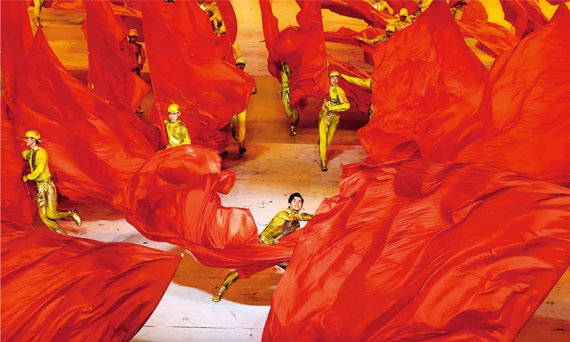 2021年6月28日晚,庆祝中国共产党成立100周年文艺演出《伟大征程》在国家体育场盛大举行。这是鼓乐歌舞《新的天地》。新华社记者 黄敬文/摄