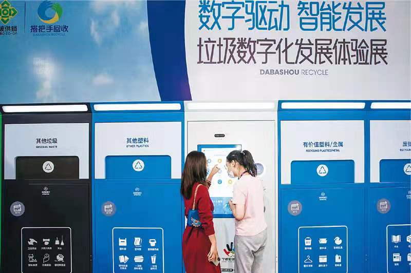 发展数字经济是把握新一轮科技革命和产业变革新机遇的战略选择。图为2021年10月15日,在2021世界数字经济大会暨第十一届智博会上,垃圾数字化设备受到客商青睐。 求是图片 董小飞/摄