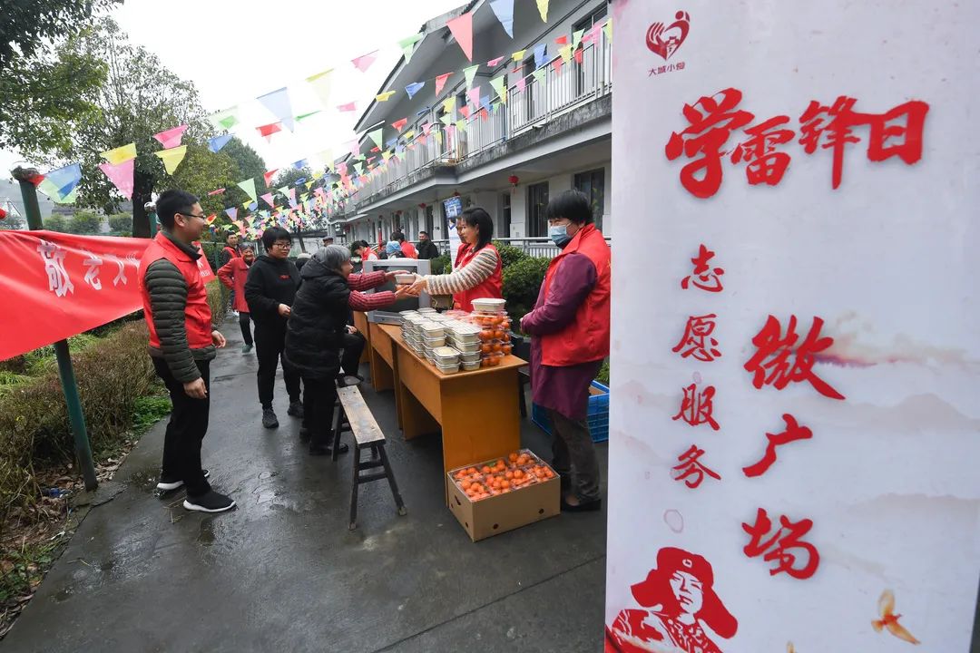 图为2022年3月4日,浙江省余姚市的志愿者们在临山镇敬老院开展志愿服务活动。 新华社记者 徐昱/摄