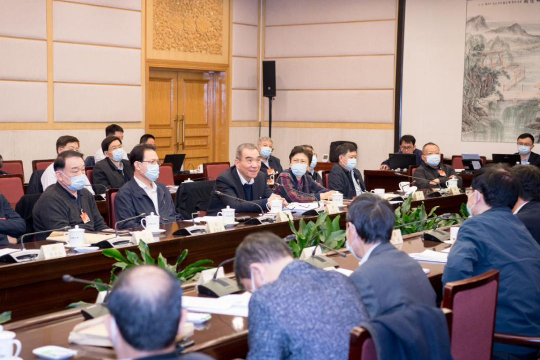 2022年3月1日至2日,全国政协十三届常委会第二十次会议在京召开。图为参会的常委在小组讨论中就全国政协常委会工作报告和关于提案工作情况的报告进行发言。 全国政协新闻局供图 王达/摄