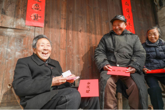 党的十八大以来,各级民政部门不断完善社会救助制度,加快构建分层分类、城乡统筹的中国特色社会救助体系,让困难群众真切感受到党的政策好、日子有奔头。图为2022年1月25日,浙江省湖州市南浔区千金镇东驿达村困难群众接受春节慰问时露出开心的笑容。 浙江省湖州市南浔区融媒体中心供图 陆志鹏/摄