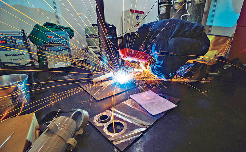 2021年10月14日至16日,第七届全国职工职业技能大赛决赛在成都举行,来自全国各地32支代表队的500多名选手在钳工、焊工、数控机床装调维修工、工业机器人操作调整工、网络与信息安全管理员、砌筑工等六个工种的比赛中一决高低。图为决赛选手在进行焊工工种比赛。 新华社记者 沈伯韩/摄