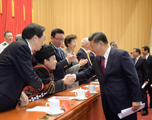2018年9月14日,中国残疾人联合会第七次全国代表大会在北京人民大会堂开幕。这是中共中央总书记、国家主席、中央军委主席习近平等同与会代表亲切握手。新华社记者 李学仁/摄