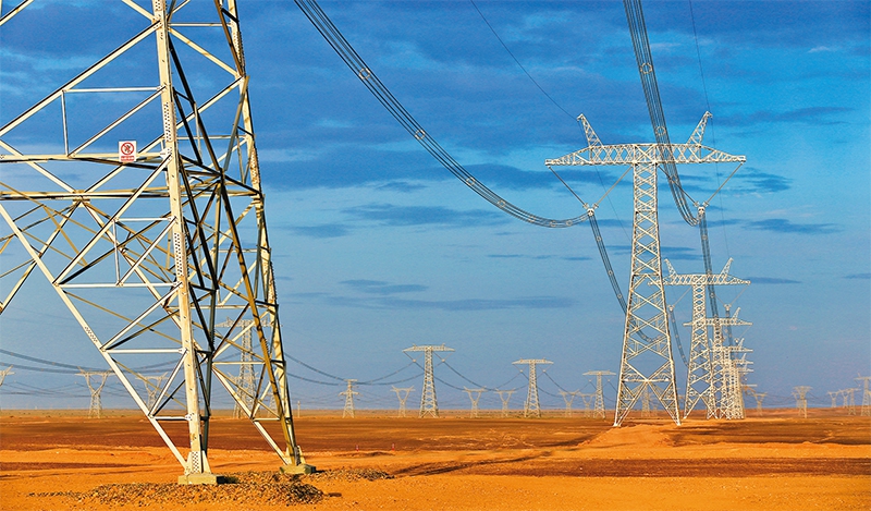 准东—皖南±1100千伏特高压直流输电工程是我国自主研发的世界电压等级最高、输电容量最大、输电距离最远的特高压工程。工程每年可减少华东地区燃煤消耗约3800万吨,成为连接西部边疆与华东地区的“电力丝绸之路”。图为该工程的新疆哈密段输电线路。国家电网有限公司党组宣传部供图