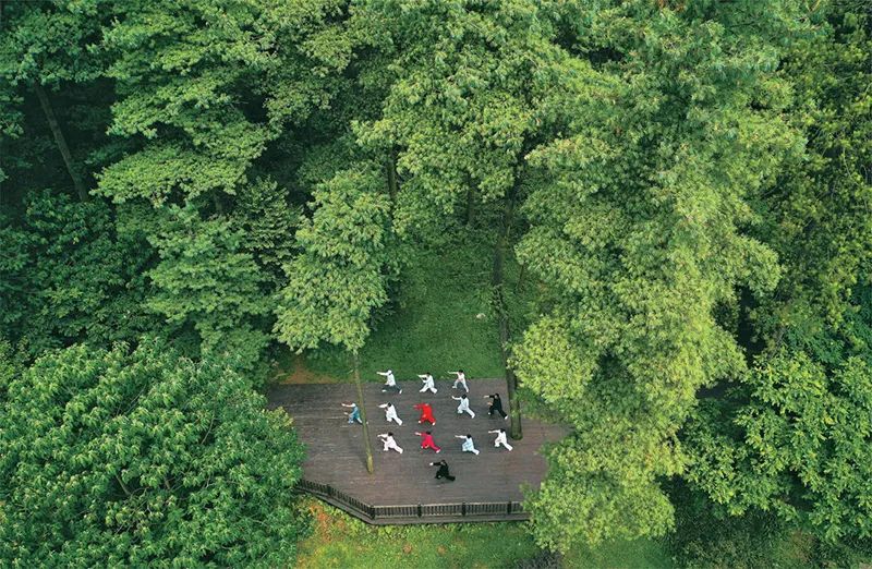 2022年以来,贵州省贵阳市以长坡岭国家级森林公园为试点,建设贵州首个“林长制”主题公园,开展习近平生态文明思想、林长制政策、森林资源保护发展政策等宣传,促进形成全社会爱林、护林、兴林的良好氛围。图为2022年7月13日,市民在长坡岭国家级森林公园里健身(无人机照片)。新华社记者 杨文斌/摄