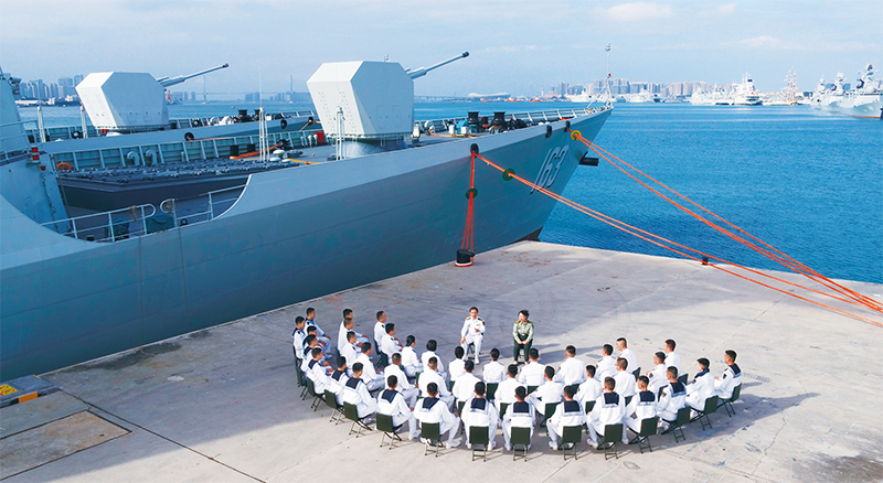 图为2022年11月14日,“星火”理论宣讲服务政治教员群体成员赴南部战区海军某部,宣讲党的二十大精神。 张杰/摄