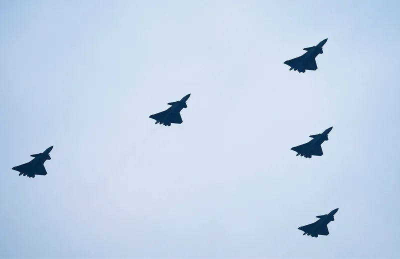2021年7月1日上午,庆祝中国共产党成立100周年大会在北京天安门广场隆重举行。图为我国自主研制的歼20双发重型隐身战斗机飞过天安门广场上空,向伟大的中国共产党百年华诞献礼。新华社记者 李刚/摄