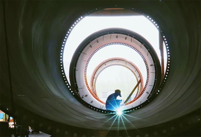 2023年一季度,我国国内生产总值同比增长4.5%,国民经济开局良好,为实现全年发展目标奠定了基础,注入了信心。图为2023年4月18日,工人在江苏连云港经济技术开发区一家公司内加工组装风电塔筒。中新社发 耿玉和/摄