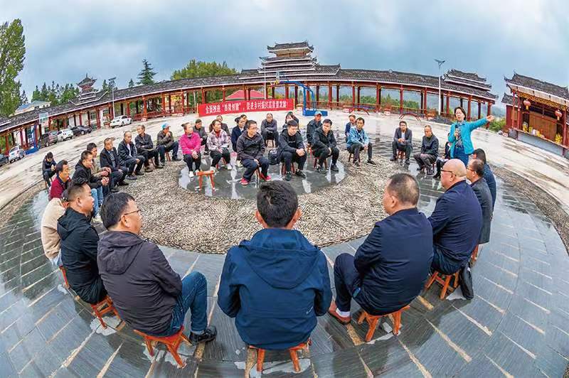 2022年10月27日,贵州省黔东南州锦屏县新化乡新化寨村文化广场,县政协部分委员、乡政府部分党员干部、村干部及村民代表积极参与协商“空地治理”讨论。人民图片 李必祥/摄
