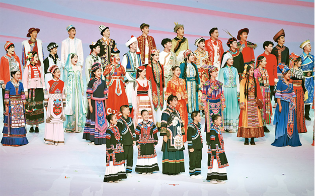 2023年7月28日,在成都大运会开幕式上,6个来自四川省凉山州昭觉县、身着彝族服饰的小孩子以一首《国旗国旗真美丽》唱响了开幕式。大凉山曾经是中国最贫困的地区之一,脱贫攻坚取得全面胜利后,孩子们受教育的条件得到了极大改善,除了学习文化知识,也拥有了展现各种才华的更大舞台。新华社记者 吴刚/摄