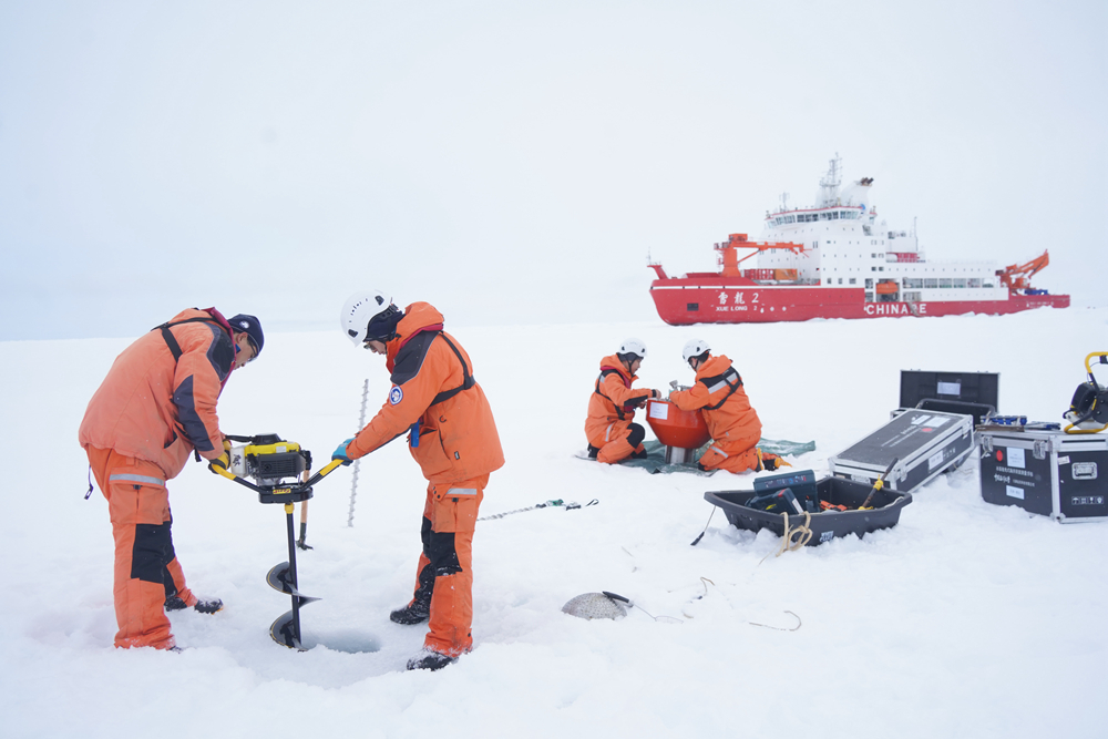 党的十八大以来,我国在创新型国家建设方面硕果累累、成效显著,创新在全社会蔚然成风。图为2023年9月5日,中国第13次北冰洋科学考察队在北极点附近的冰站调查作业。新华社记者 魏弘毅/摄