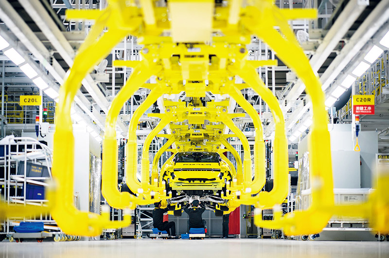 推进新型工业化是实现经济高质量发展的战略选择。图为2023年1月11日,湖北省武汉市经开区智能网联和电动汽车产业园内,工人在一家汽车公司的流水线上作业。新华社记者 肖艺九/摄