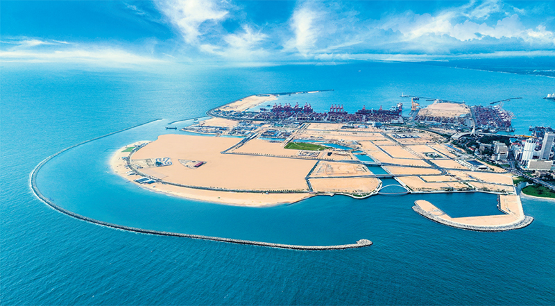斯里兰卡科伦坡港口城是中交集团在海外投资建设运营的大型城市综合体开发工程。图为2023年9月21日拍摄的科伦坡港口城。中交集团供图