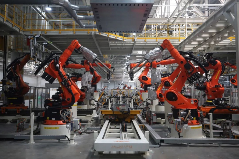 图为2023年5月29日在安徽合肥拍摄的模块化电驱动平台工厂车身车间一角。新华社记者 杜潇逸/摄