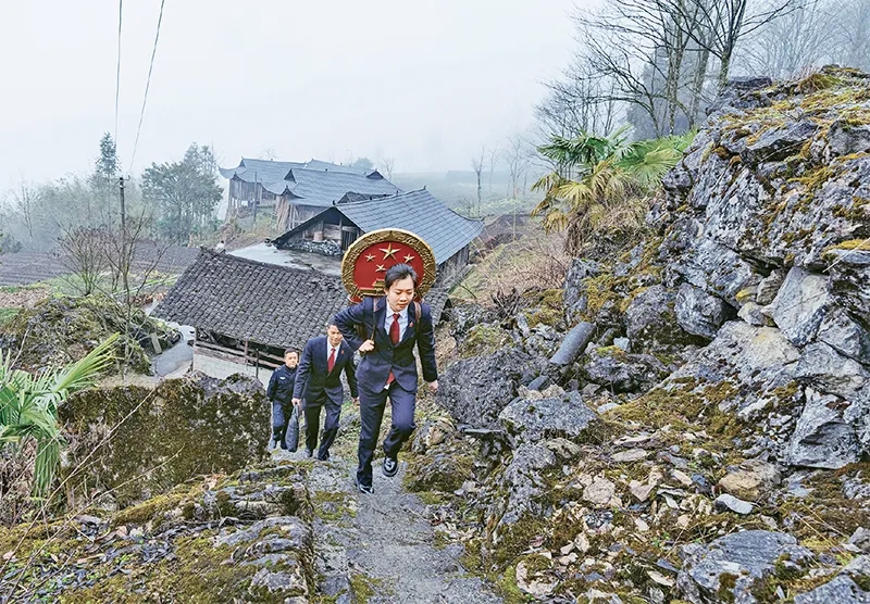 近年来,基层人民法院积极推行巡回送法进乡村活动,通过现场宣讲、模拟庭审、法律咨询等方式,普及法律知识,化解基层纠纷矛盾,助力乡村振兴。图为2023年2月28日,湖北省鹤峰县法庭工作人员在前往中营镇的路上。 新华社发 覃涛/摄