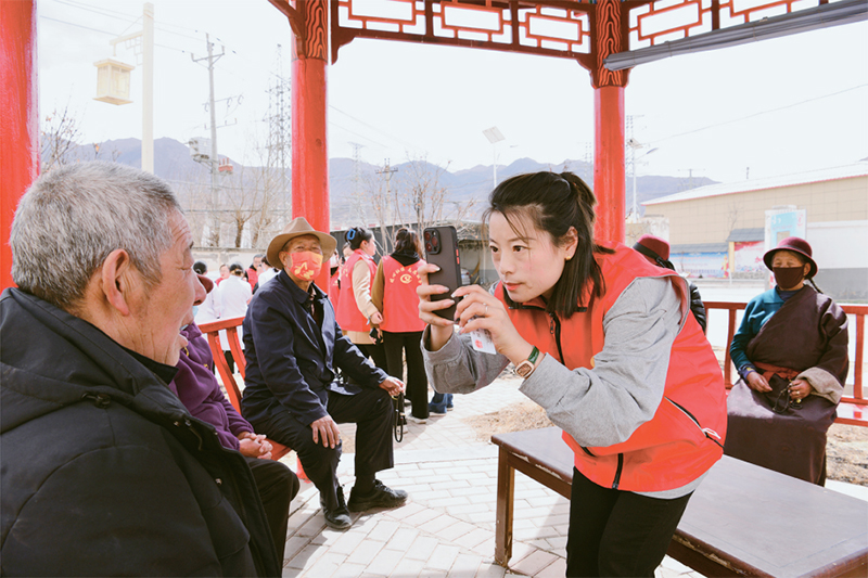我国实施全民参保计划,织就世界上覆盖人口规模最大的社会保障安全网。图为2023年3月8日,青海省黄南藏族自治州社保局工作人员为参保群众认证。中国社会保障杂志社供图