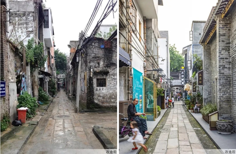 图为永庆坊改造前后巷道和建筑对比。广州市荔湾区委宣传部供图
