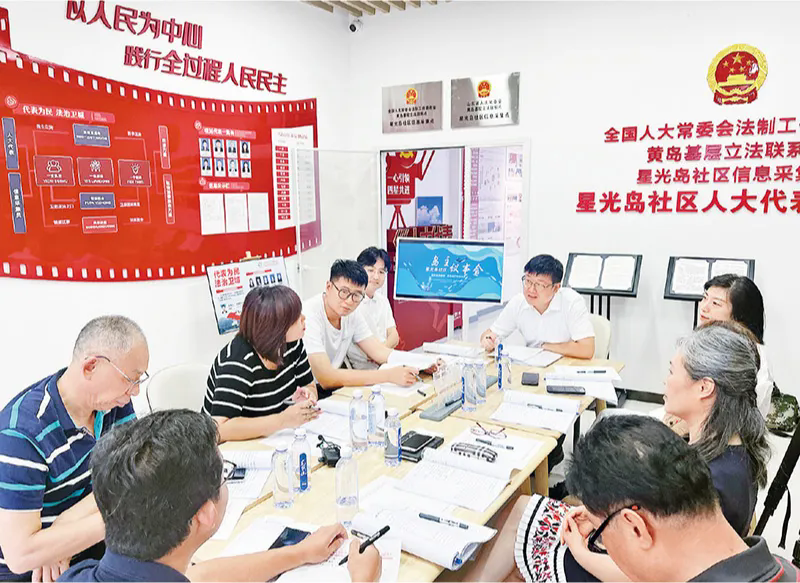 图为2023年8月6日,全国人大常委会法工委黄岛基层立法联系点在山东省青岛市黄岛区灵山卫街道星光岛社区征求社区居民对《中华人民共和国刑法修正案(十二)(草案)》的意见建议。全国人大常委会法工委供图