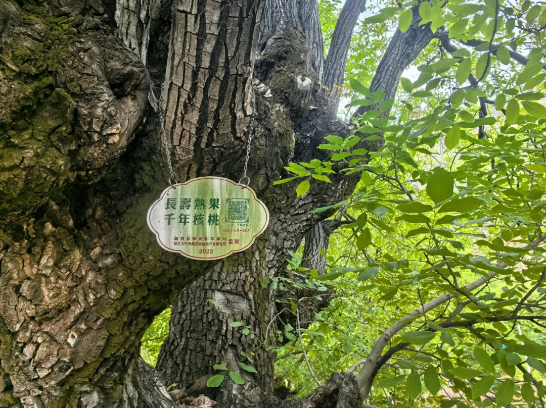 在一棵2100多年树龄的“千年核桃王”下驻足端详,一个亮闪闪的金属牌引起了大家的兴趣。“这是每棵古树独有的‘身份证’,扫一扫上面的二维码,树龄、树高、树径、产量、古树等级、权属户名、联系人等信息一目了然”,刘利平热情地为大家释疑解惑。作为长江大学园艺园林学院的一名青年教师,她的另一个身份是援藏女博士,这些“身份证”,就是她所在的长江大学西藏高原核桃产业研究所和当地林业草原局共同制作的古树信息系统。