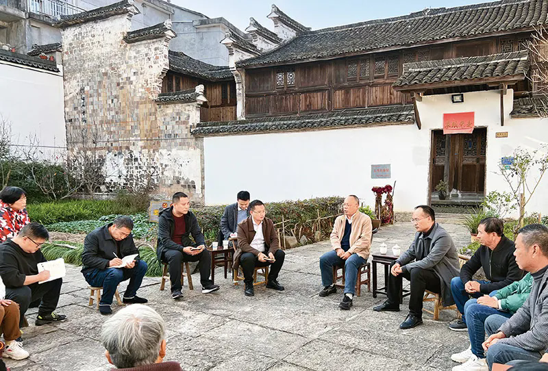 图为2021年12月9日,徐利民同志(右五)在基层调研并宣讲党的十九届六中全会精神。 陈怡君/摄