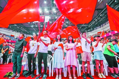 山东大学2019级新生开学典礼齐唱《我和我的祖国》。光明图片/视觉中国
