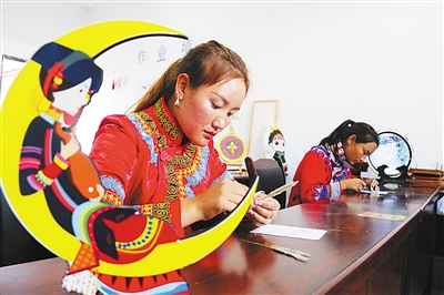 凉山州普格县螺髻山镇德育村的文创产业园内当地居民正在进行彝族传统手工艺品的制作。杨尚威摄/光明图片