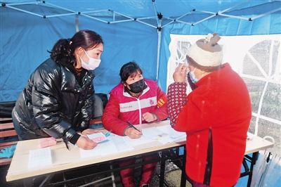 浙江省杭州市实施“防控疫情 人人有责”十项举措,完善社区组织,共同防控疫情。图为小营巷社区工作人员向居民发放社区出入通行证。新华社发