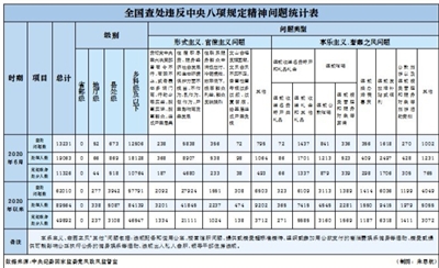 中国纪检监察报讯(记者 陆丽环)7月29日,中央纪委国家监委公布了2020年6月全国查处违反中央八项规定精神问题汇总情况。当月,全国各级纪检监察机关共查处违反中央八项规定精神问题13231起,处理19063人,给予党纪政务处分11326人。这是中央纪委国家监委连续第82个月公布月报数据。