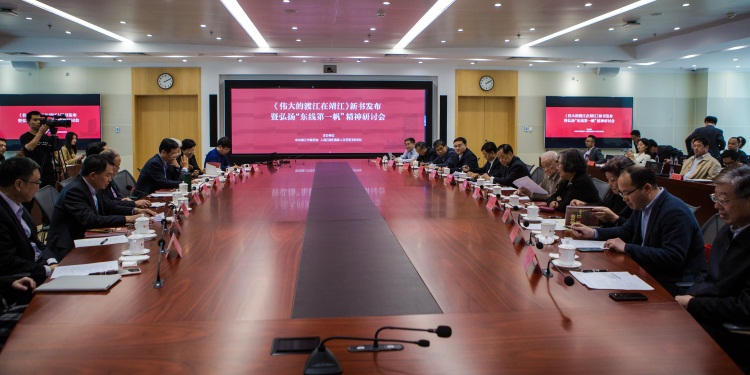 2019年4月20日下午,由中共靖江市委员会、人民日报社《国家人文历史》杂志社联合主办的《伟大的渡江在靖江》新书发布暨弘扬“东线第一帆”精神研讨会在北京人民日报社新媒体大厦举行。
