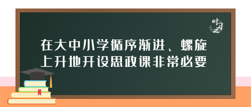 【原文】在大中小学循序渐进、螺旋上升地开设思政课非常必要,是培养一代又一代社会主义建设者和接班人的重要保障。人的成长、成熟、成才不是一蹴而就的,而是一个渐进的过程,就跟人的生理发育一样,所以要把这几个阶段都铺陈好。