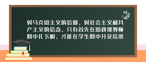 【原文】对马克思主义的信仰,对社会主义和共产主义的信念,只有首先在思政课教师心中扎下根,才能在学生心中开花结果。思政课教师只有自己信仰坚定,对所讲内容高度认同,做学习和实践马克思主义的典范,才能讲得有底气,讲深讲透,才能有效引导学生真学、真懂、真信、真用。