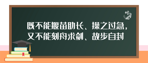 【原文】要针对不同学段,根据思想政治理论教育规律和学生成长规律科学设置具体教学目标,抓好教学目标设计、课程设置、教材编写、教学改革、教师培养、考核评价等环节,既不能揠苗助长、操之过急,又不能刻舟求剑、故步自封。