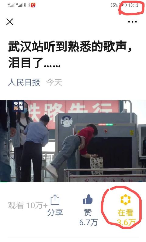 首先是央视的重磅炸弹,简直一个接一个:早起就被一条《当武汉火车站响起熟悉的歌声……》的快闪新闻震得瞬间泪奔。单是那前奏一起,看到如今挤挤挨挨的武汉火车站现场、交织着那曾经至暗时刻的回忆,心疼、感动、自豪……种种情愫油然而生!当张定宇出现在镜头里,画面定格在“这是英雄的祖国”,那一刻,心真的是知道了什么叫“DUANG”一下!快闪之后,现场群众最多说到的“不容易”和“安全感”,真是大家的心声。也正是因为如此,人民日报微信公号16:36转发这条视频后,晚上10点刚过,在看量就已经达到3.6万——人心所向,可见一斑。