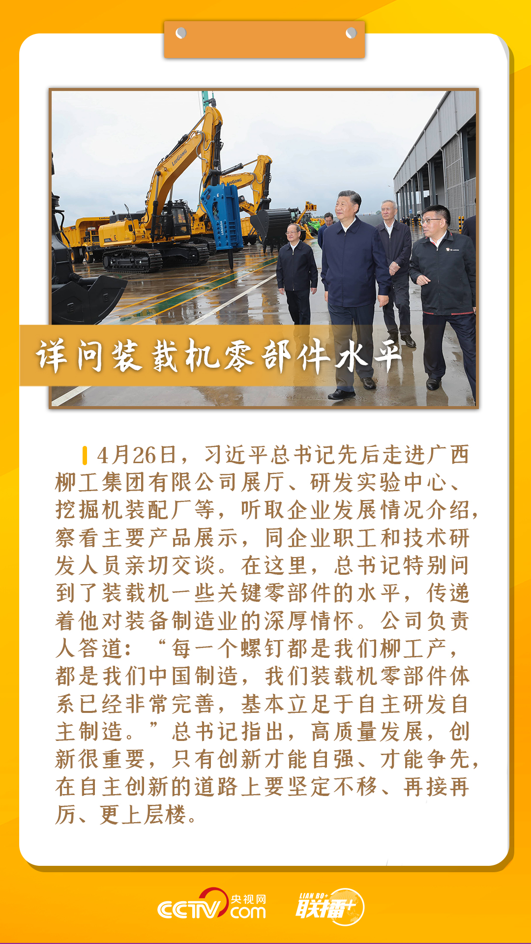 从到红军长征湘江战役纪念园向湘江战役红军烈士敬献花篮、参观纪念馆到走进毛竹山村葡萄种植园察看葡萄长势,再到走进广西柳工集团有限公司展厅、研发实验中心等听取企业发展情况介绍……总书记行程满满,步履匆匆,留下很多令人印象深刻的话语与瞬间。