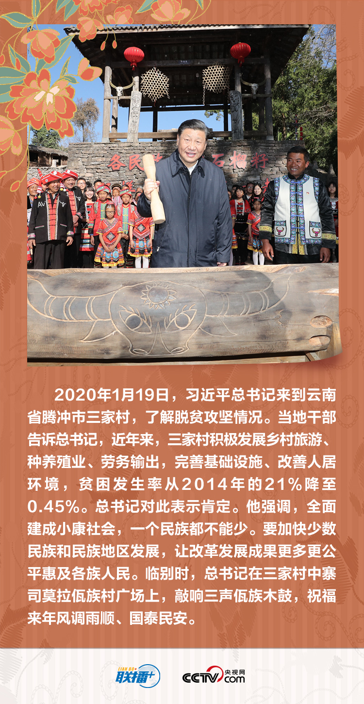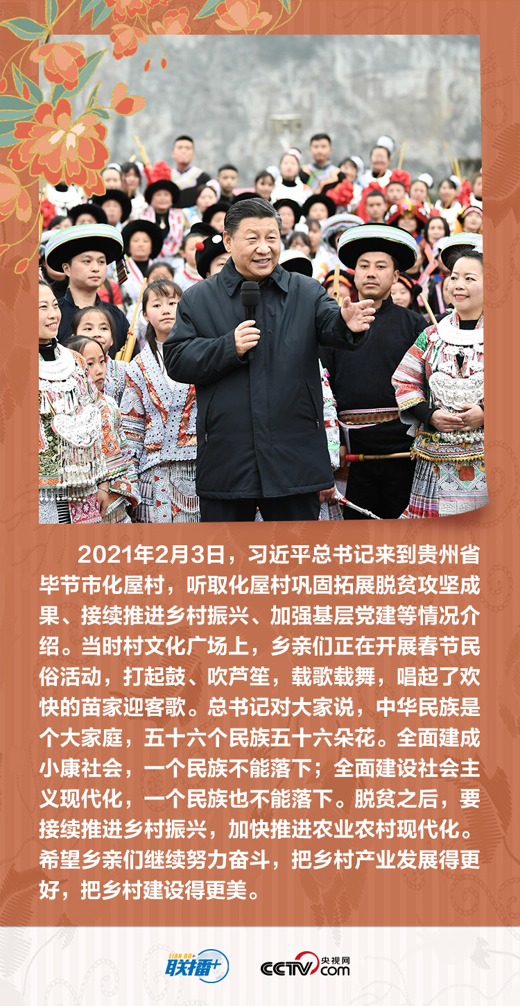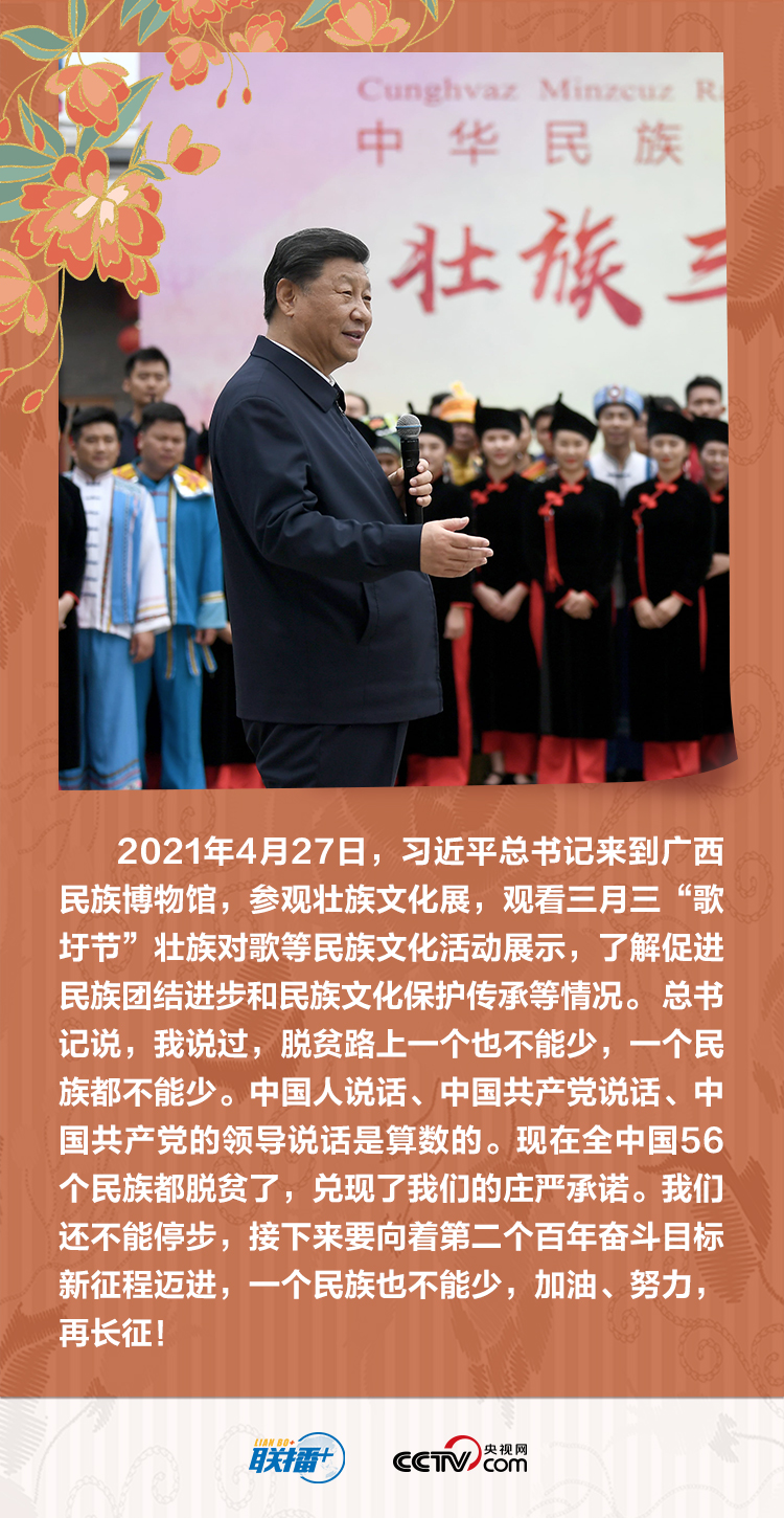 党的十八大以来,总书记多次深入少数民族地区考察,足迹遍及祖国北疆、西南边陲、雪域高原、天山南北,他频频强调“一个民族都不能少”这个庄严承诺。