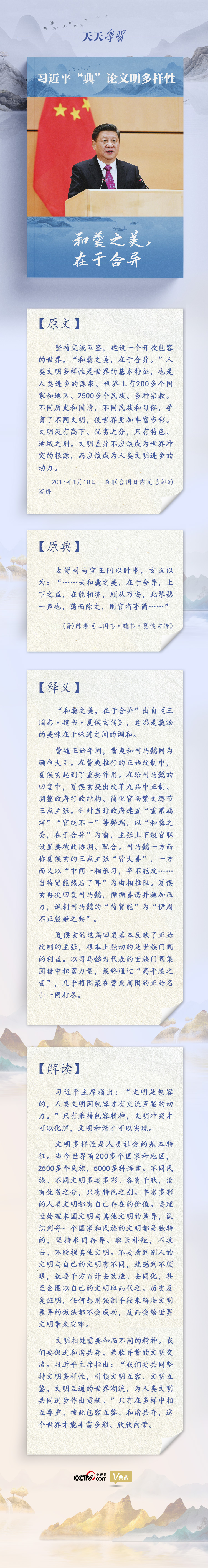 推动文明交流互鉴,需要秉持正确的态度和原则。习近平主席多次在联合国舞台上引用中国古代经典名句,阐述中国对文明多样性的主张,借古以开今,为解决人类问题贡献中国智慧和方案。