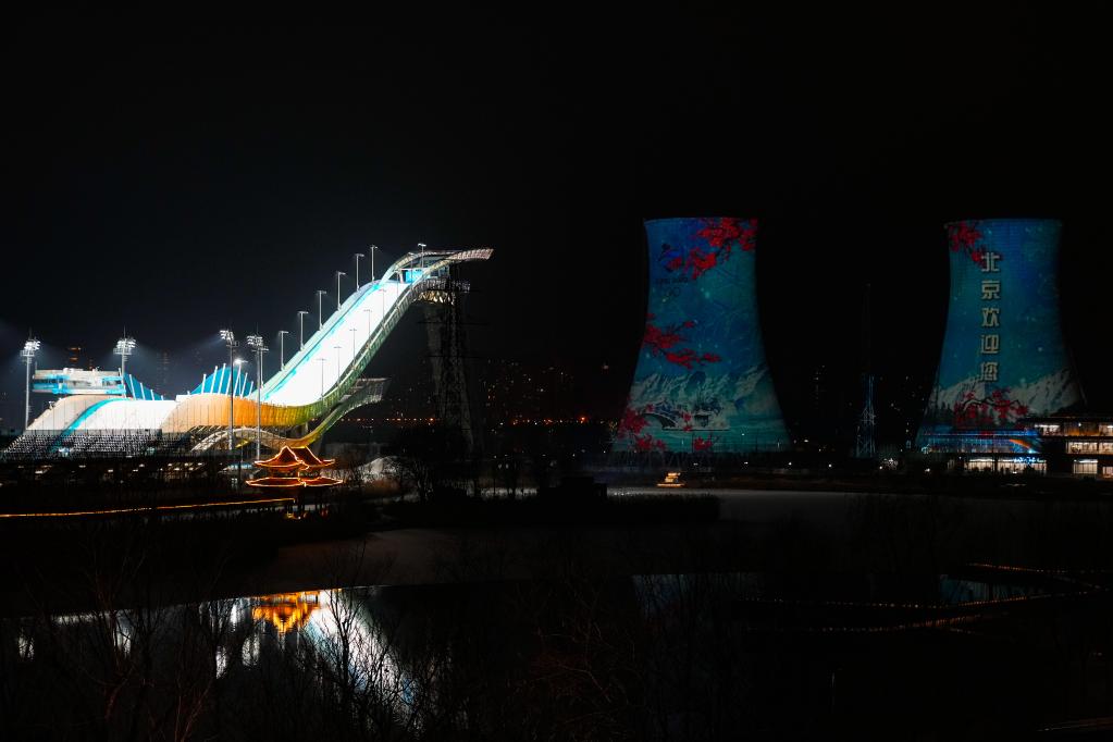 1月20日,位于北京市石景山区首钢园内的首钢滑雪大跳台开启灯光秀。新华社记者 彭子洋 摄