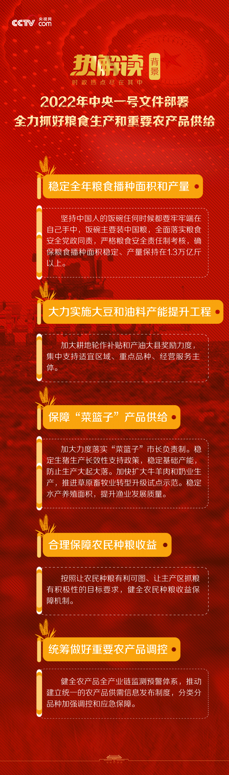 2021年中央农村工作会议提出,要全力抓好粮食生产和重要农产品供给,稳定粮食面积,大力扩大大豆和油料生产。2022年中央一号文件将这一要求纳入其中,传递出十分明确的新信号。