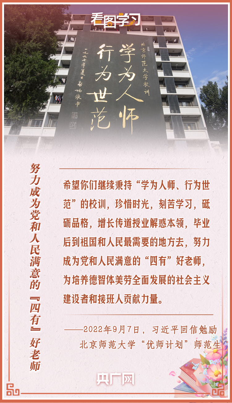 “师者,人之模范也。”教师,是人类灵魂的工程师,是人类文明的传承者。教师的一言一行,都能给学生带来极大的影响。习近平总书记高度重视我国教育事业,关心教师教学工作,关注教师队伍建设和权益保障,多次寄语广大教师并提出殷切希望。
