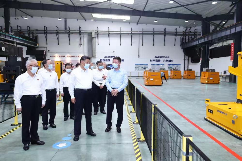 △2022年8月17日,习近平总书记在辽宁沈阳新松机器人自动化股份有限公司生产车间考察调研。