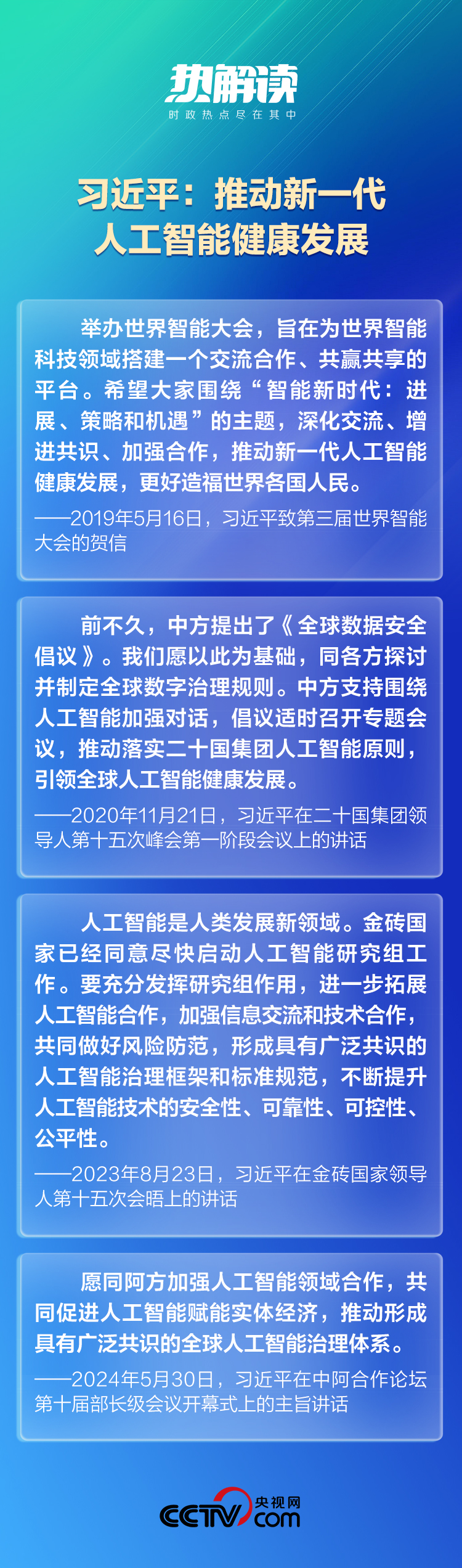 早在2018年,习近平总书记在主持十九届中央政治局第九次集体学习时就强调要未雨绸缪,加强战略研判,确保人工智能安全、可靠、可控。此后,习主席又在多个国际场合倡议“不断提升人工智能技术的安全性、可靠性、可控性、公平性”,“引领全球人工智能健康发展”。