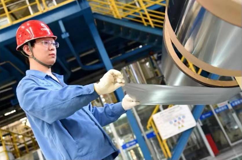 现如今,太钢生产的“手撕钢”厚度已达0.015毫米,广泛应用于航空航天、医疗器械等领域,是非常重要的关键基础材料。