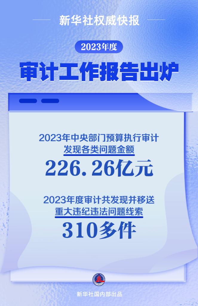在重大违纪违法问题查处方面,2023年5月以来,审计共发现并移送重大违纪违法问题线索310多件,涉及1200多人。