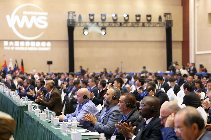 2024年10月14日,第六届世界媒体峰会在新疆乌鲁木齐开幕,这是参会代表在开幕式现场。新华社记者 李明 摄